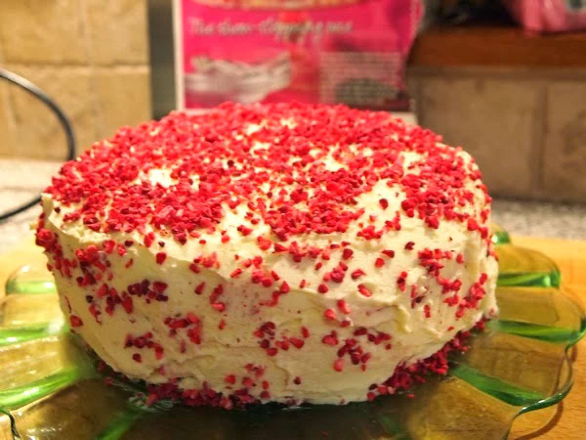 - Gefüllt wird mit Ganache aus weißer Schokolade und einem Glas Himbeerkonfitüre dessen Inhalt mit Himbeerlikör glattgerührt wurde.