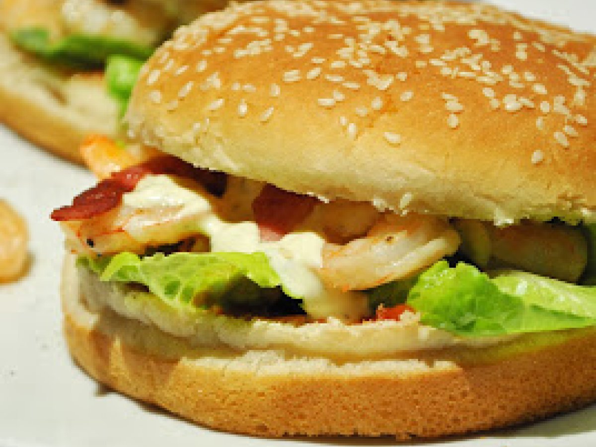 Garnelenburger mit speckbröseln & zitronen-remoulade