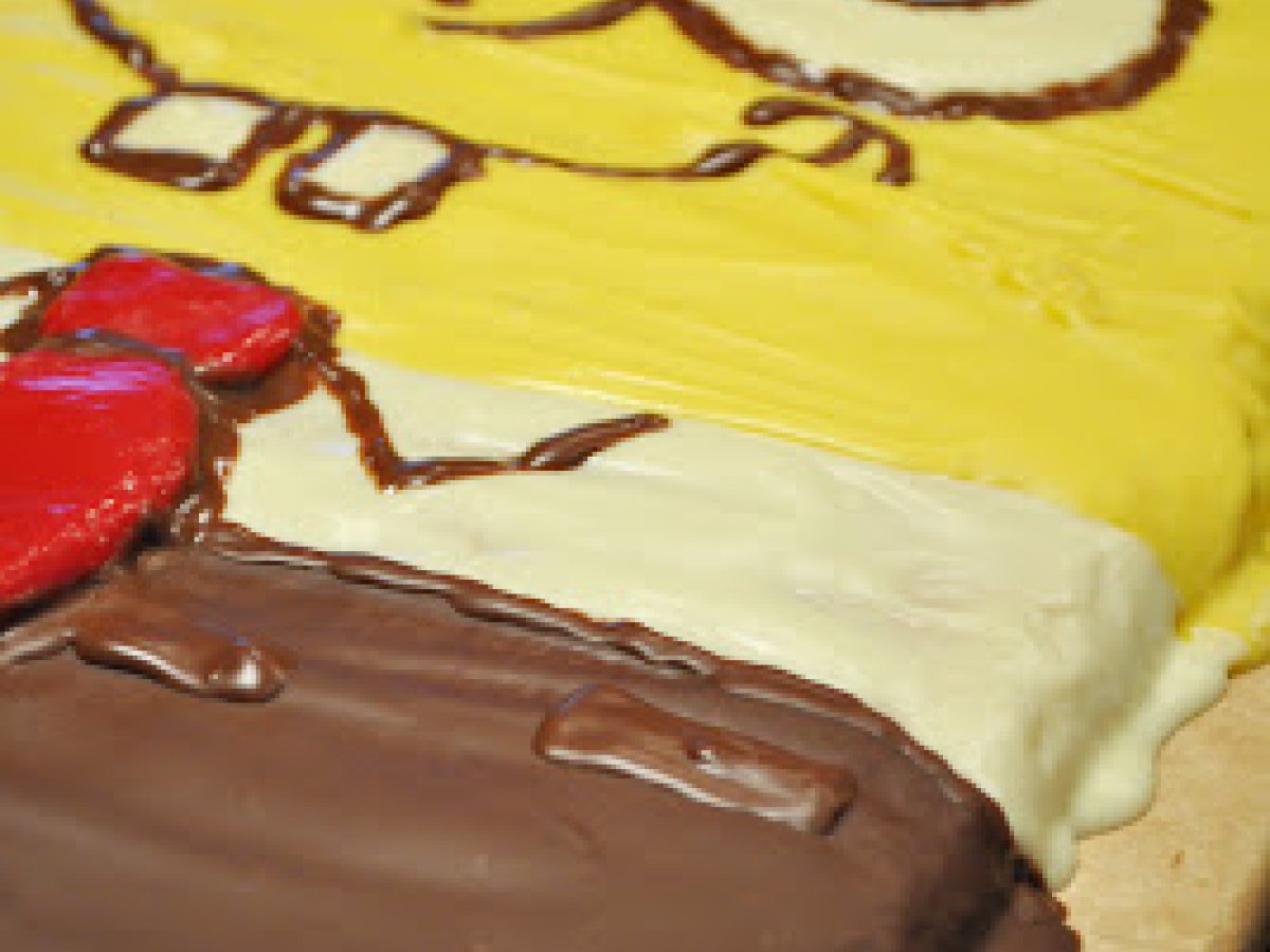 - Mit der gelben Schokolade nun 2/3 des Kuchens, so dass der Kopf von Spongebob fällt. Trocknen lassen.