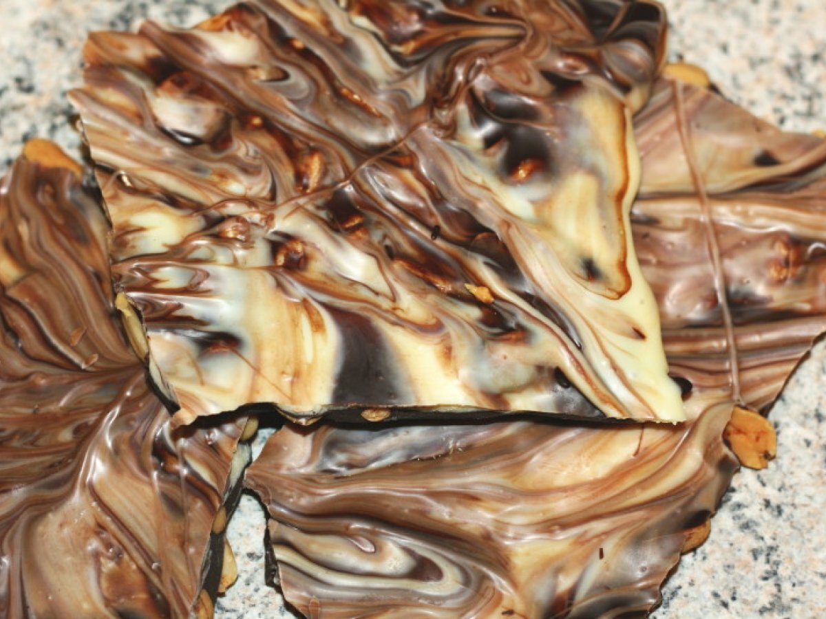 - Abkühlen lassen, dann in einen großen Schokolade oder kleine Rindenstücke zu brechen.