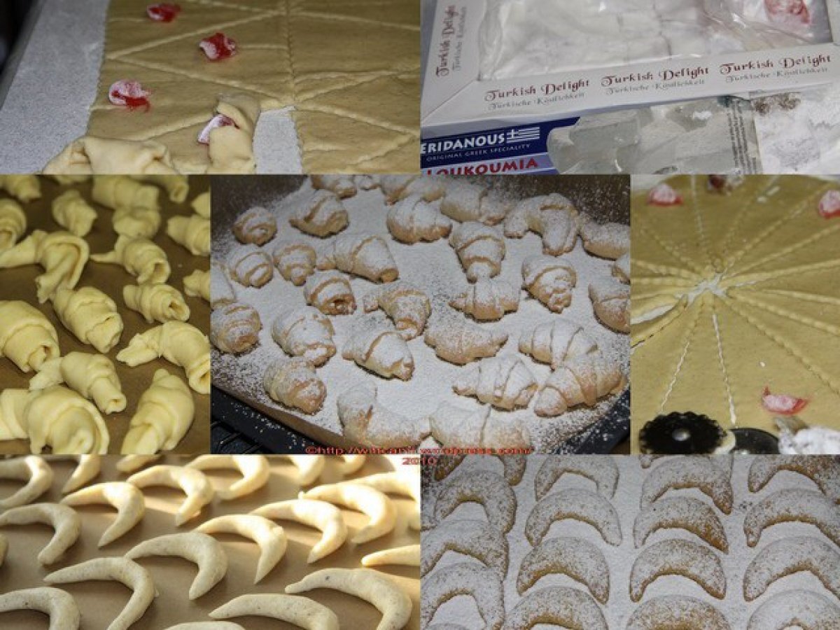 - Die Füllung auf dem Teig Probe und aufrollen Croissants.