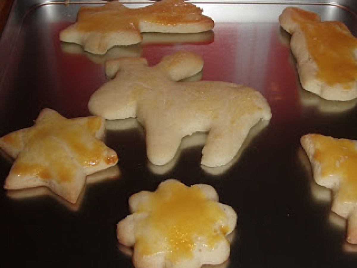 - Den Teig ausrollen und schneiden 4 mm mit verschiedenen Formen und auf einen Teller legen Bach Backpapier.