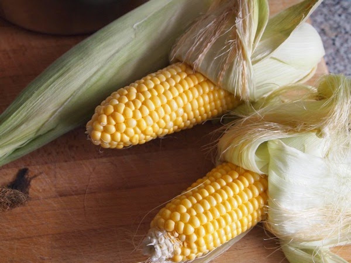 - Mit einem großen Messer die Maiskörner von den abgekühlten Maiskolben abschneiden. 2/3 der Maiskörner in die Suppe geben und nun mit einem Zauberstab gut zerkleinern, der Mais macht die Suppe supercremig, diese Cremigkeit kann man durch Zugabe von Double Cream noch multiplizieren.