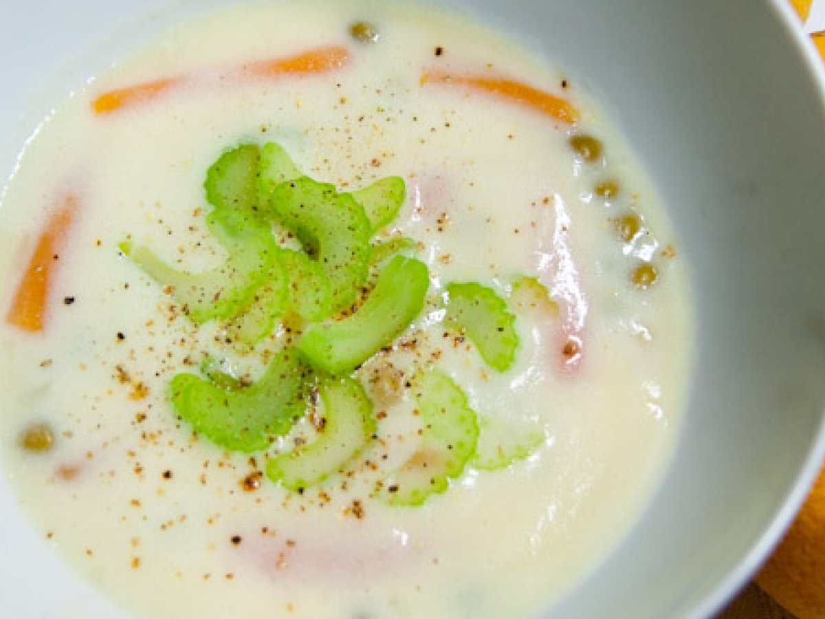 - Die Suppe mit Salz und Pfeffer abschmecken dienen.