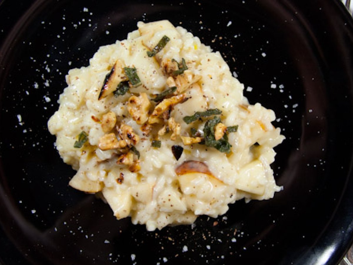 Birnen gorgonzola risotto mit wallnüssen