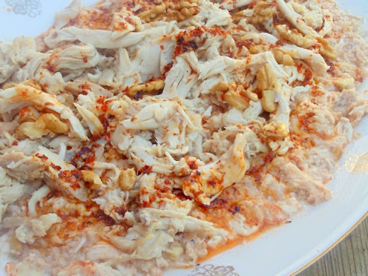 - Walnuss kerne fein hacken. Toastbrot die Rinde entfernen, feuchten und zerkleinern. Ausgezupfte Hähnchenfleisch mit Zwiebel, Toastbrotstücken, Salz, edelsüß Paprikapulver, Walnusskerne und Hähnchenbrühe zu einer Pastete rühren.