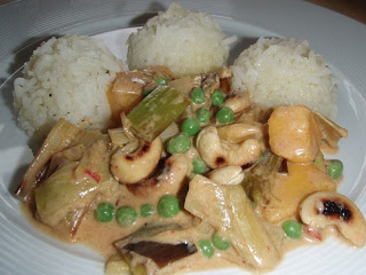 - Sprang. Knoblauch, Currypaste und Chili einschließlich Mischung, kurz anbraten.