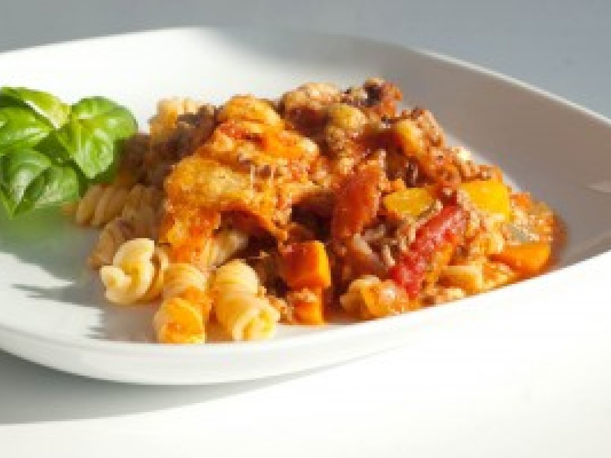 - Parallel zum Nudeln kochen, sondern nur "aufzuhellen", so dass die Penne oder Fusilli sind noch bissfest, weil sie weich im Ofen sind.