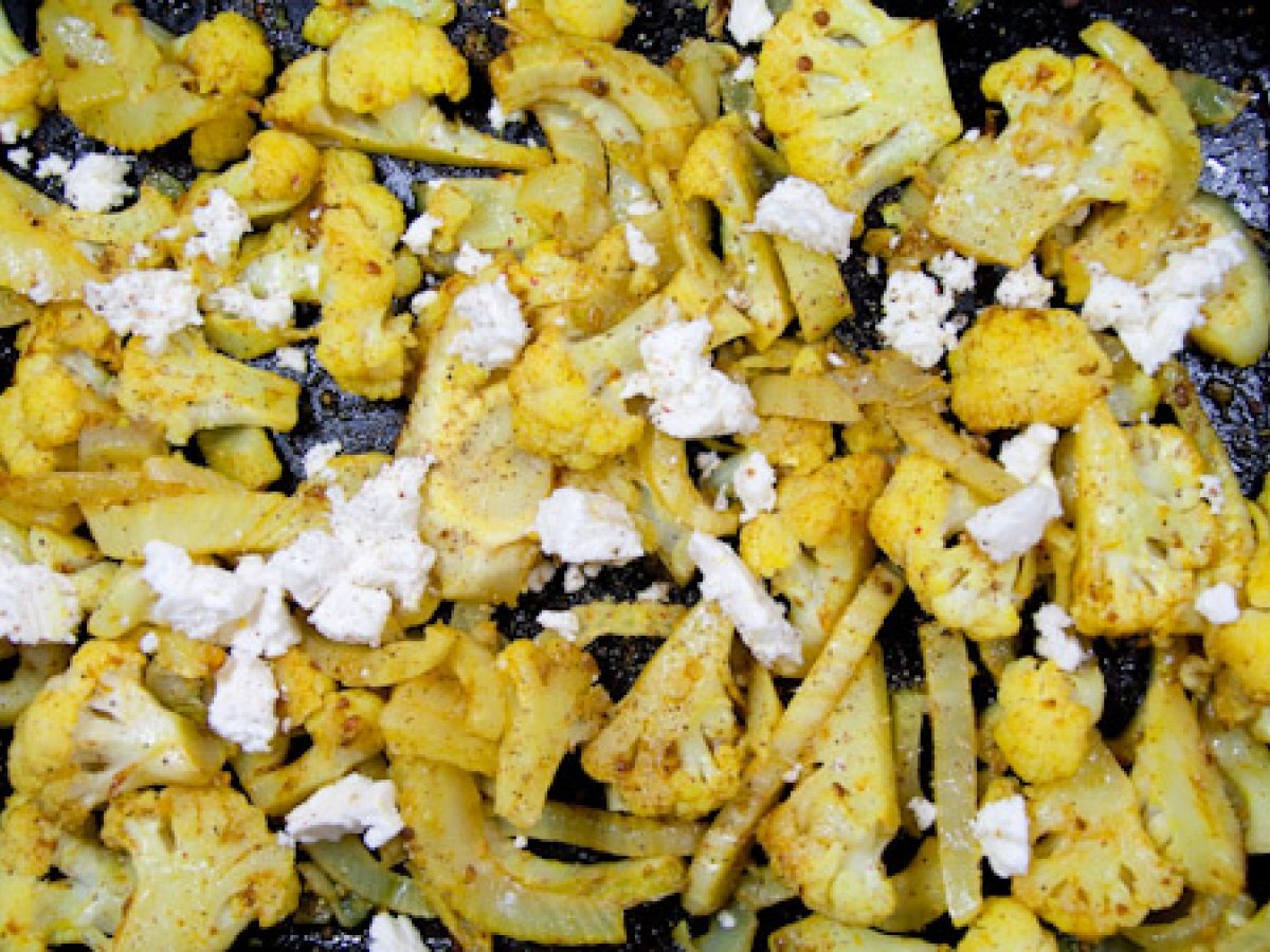 - Dismember den Blumenkohl und schneiden den Fenchel in Scheiben schneiden und in eine Schüssel geben.