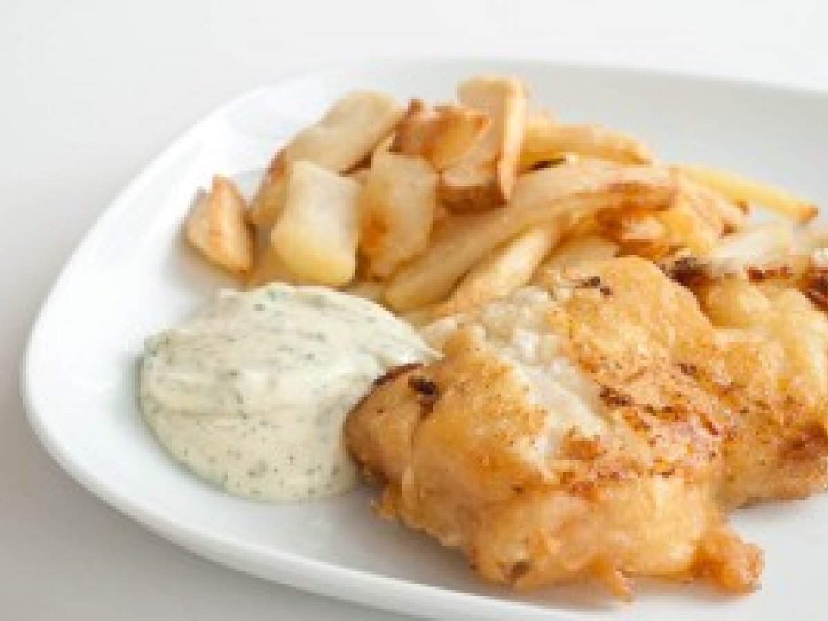 - Ölquelle Hitze (ca. 170 °), durch den Teig ziehen Sie die Fischfilets und legen Sie sie in der Pfanne mit Öl.