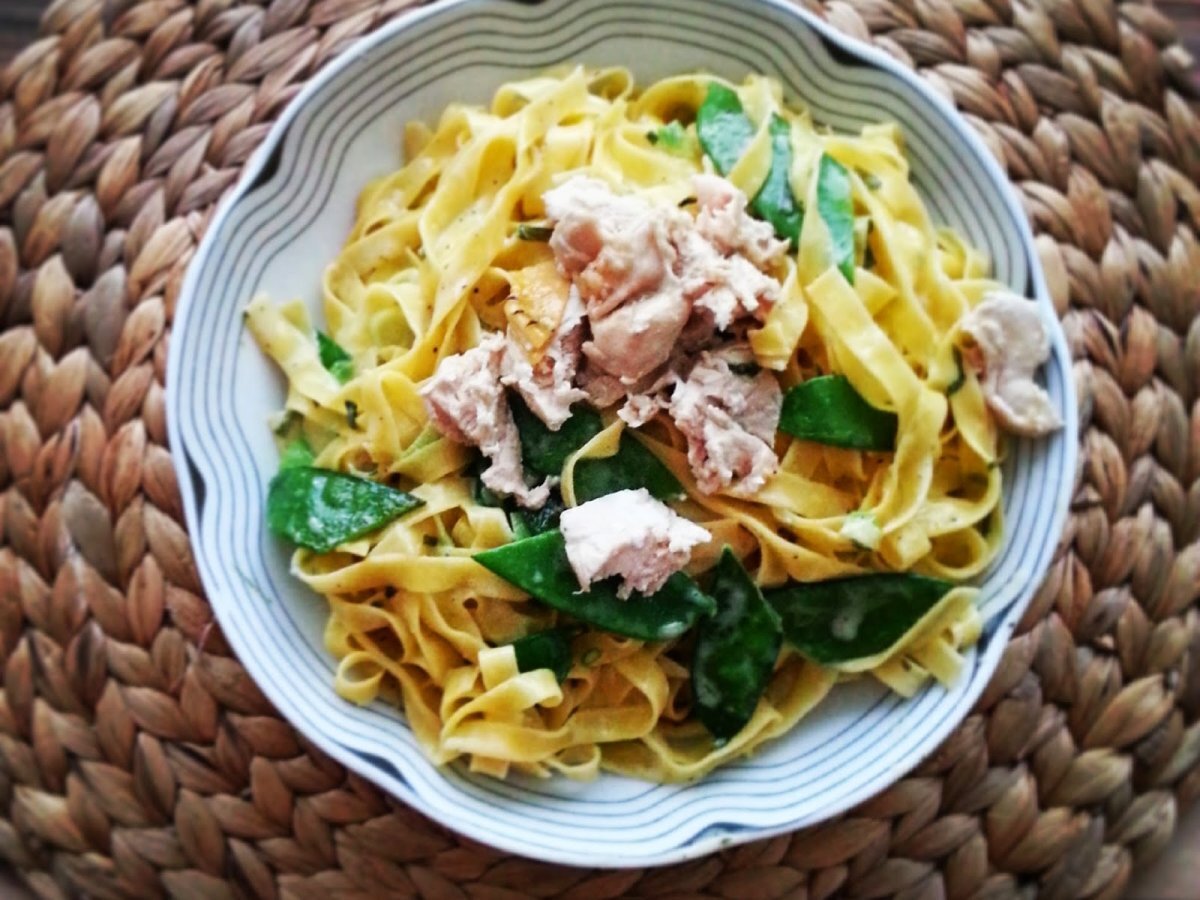 Hähnchenbrust auf bandnudeln in estragonsauce