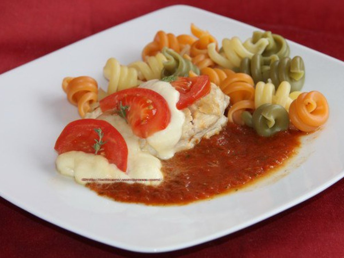Hähnchenbrust mit mozzarella überbacken und aurorasauce