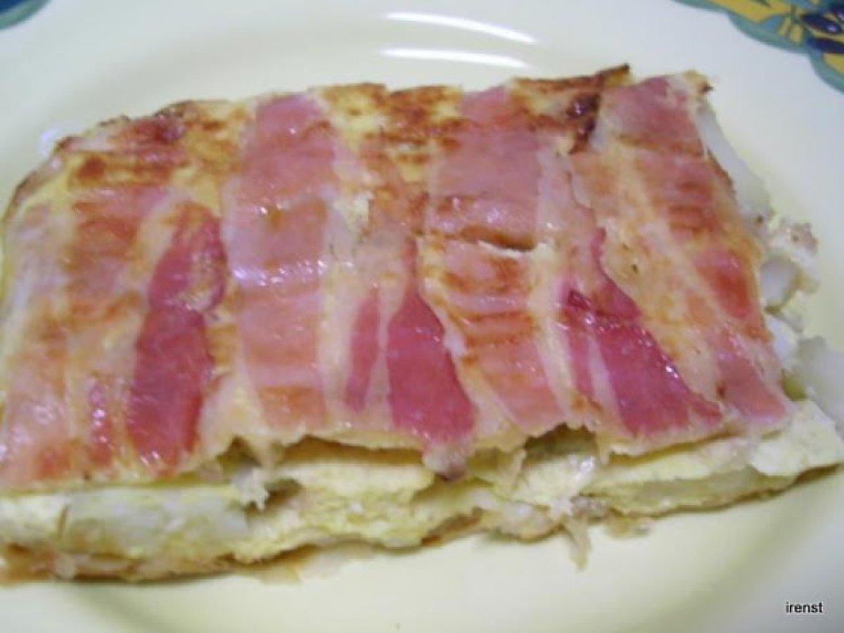- Erste, mit Speckscheiben auslegen.