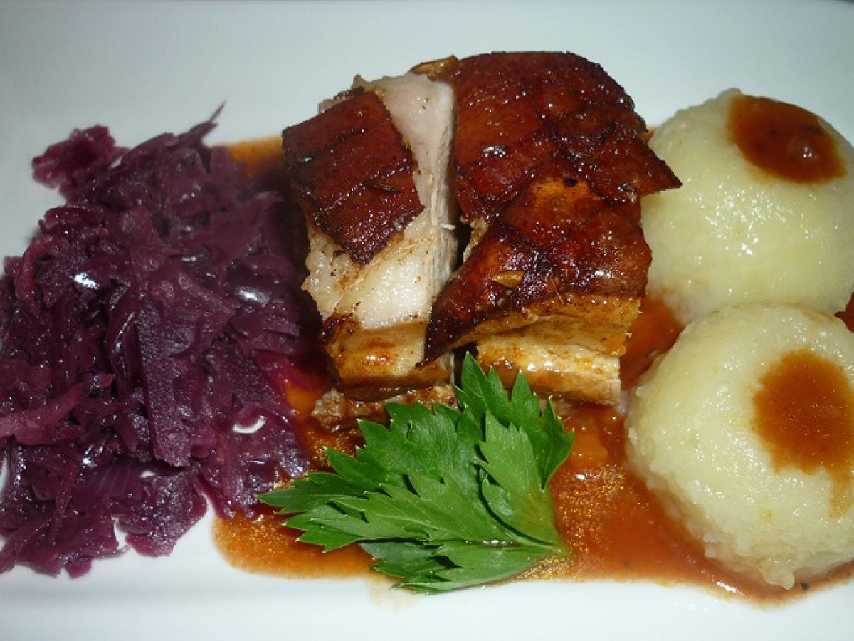- Die Sauce vor dem Servieren durch ein Sieb passieren und den Braten aufschneiden. Mit Klößen und Rotkohl servieren.