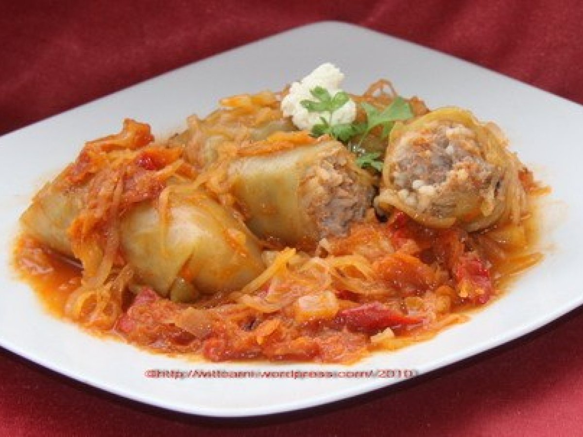 - Mit Wasser, wobei das Kohlenstoff bereits abgeschlossen, und Sauerkrautsaft gegart. Kohlrouladen muss mit Flüssigkeit bedeckt sein.