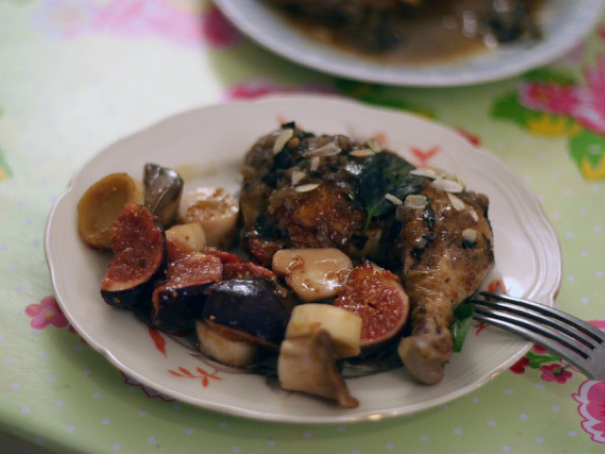 - 10 minuten vor ende der garzeit den deckel runternehmen & die sauce eindicken lassen, dabei gelegentlich umrühren. währenddessen die feigen & die kräuterseitlinge putzen & kleiner schneiden.