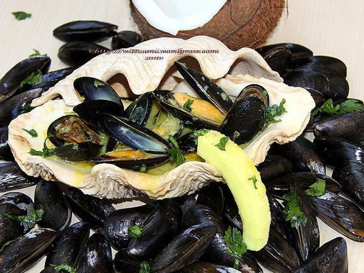 - Geben Sie die Muscheln in Kokosnuss-Sauce und kochen bei mittlerer Hitze 7-10 Minuten geschlossen
