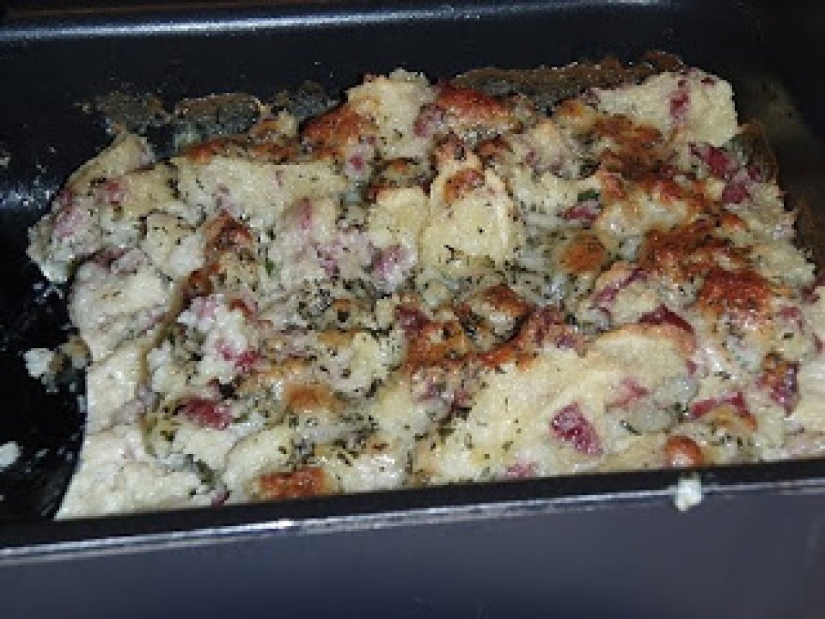 - Für das Gießen zum Bräunen Majoran, Sahne, geriebenem Käse und einigen Edel Paprika gemischt.