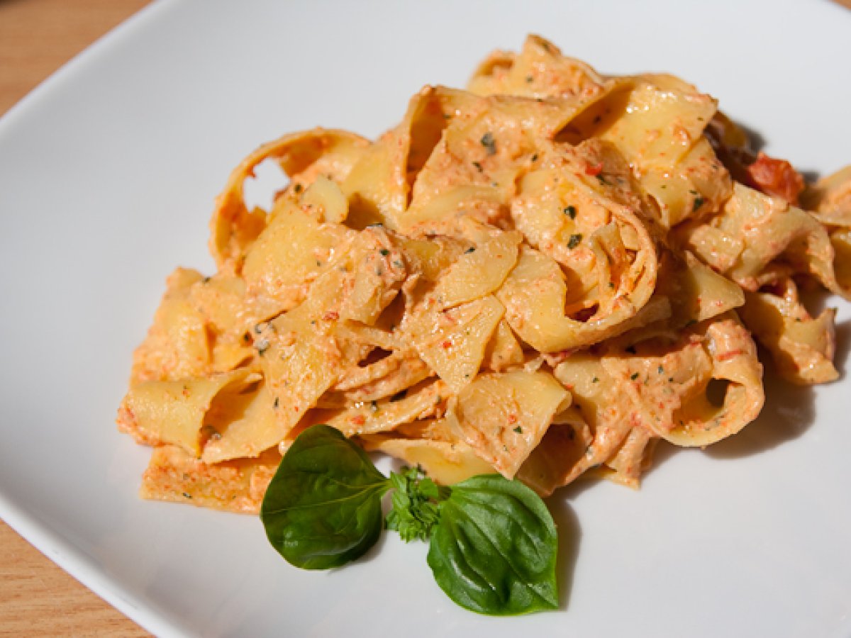 - Der Stamm von gekochten Teigwaren und die Frischkäsemischung Paprikaschoten in Streifen schneiden und kochen restlichen sofort servieren.