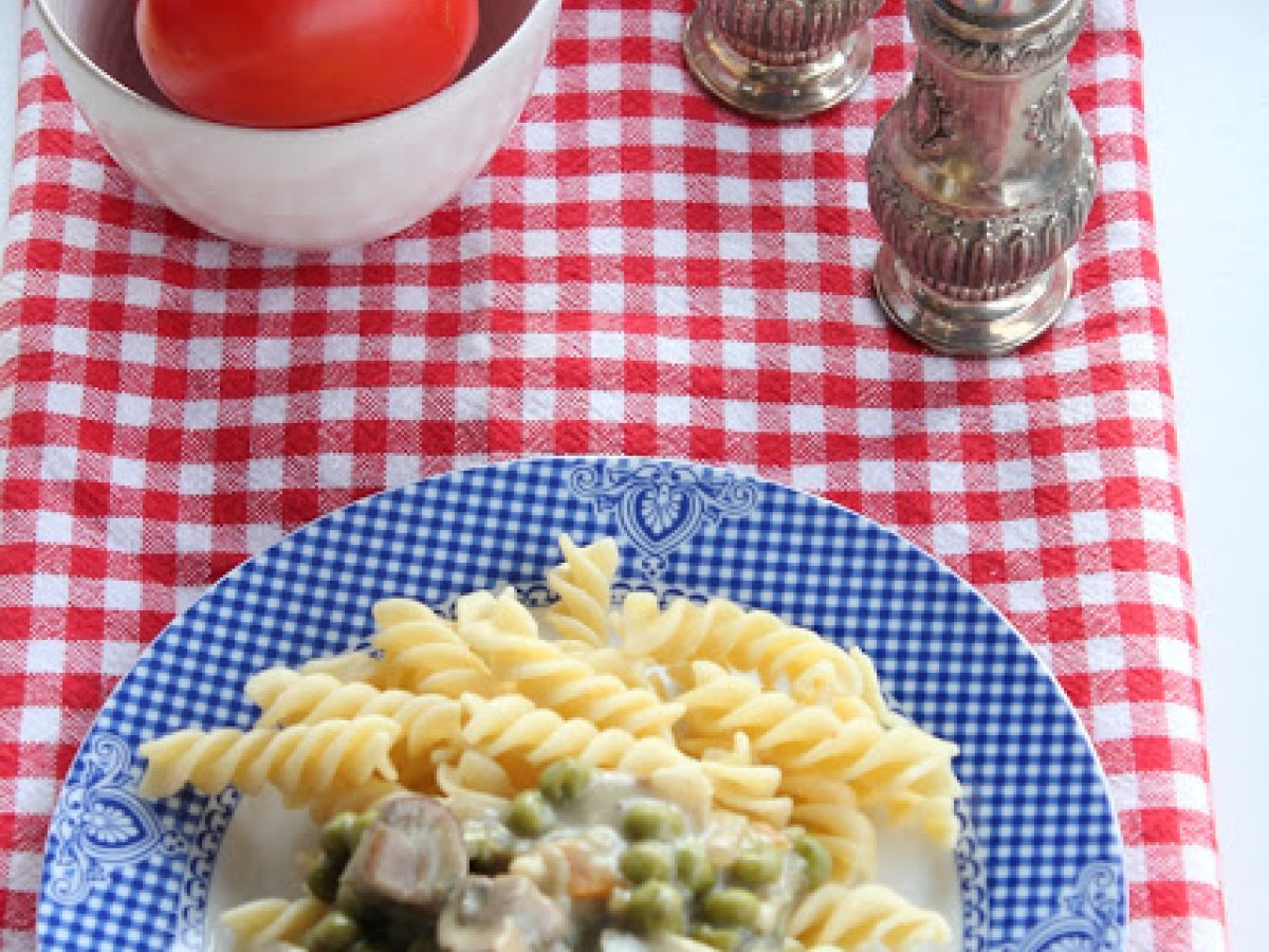 - Lassen aufköcheln kurz. 1 Handvoll Erbsen (frisch oder gefroren) und 4 Esslöffel Frischkäse (bis zu 5% Fett absolut) hinzuzufügen.