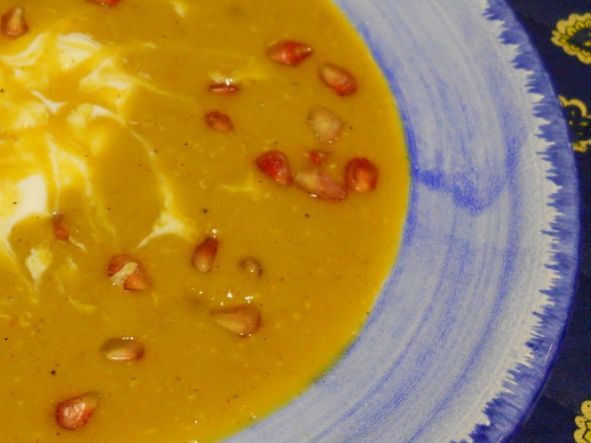 Rote-linsen-suppe mit granatapfelkernen