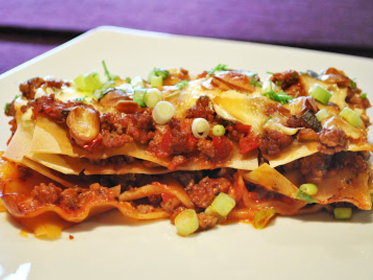 Sommergarten auf dem teller: bunte sommerlasagne mit scamorza