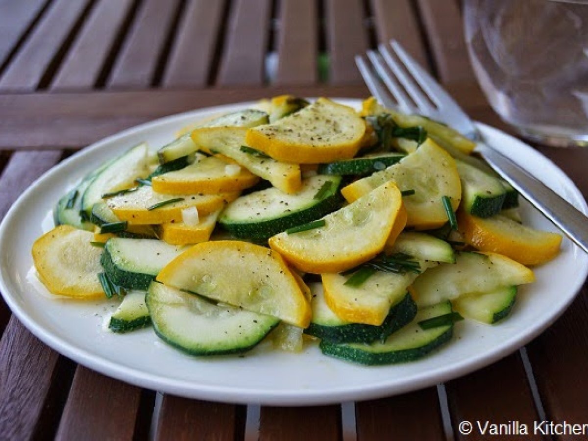 Die Butter in einem Topf erhitzen, den Knoblauch darin eine Minute dünsten. - Dann die Zucchini hinzugeben und bei zugedecktem Topfdeckel nach Wunsch bei mittlerer bis geriner Hitze bissfest garen . Den Schnittlauch hacken und zum Ende zusammen mit dem Limettensaft unterrühren. Mit Salz und Pfeffer würzen.
