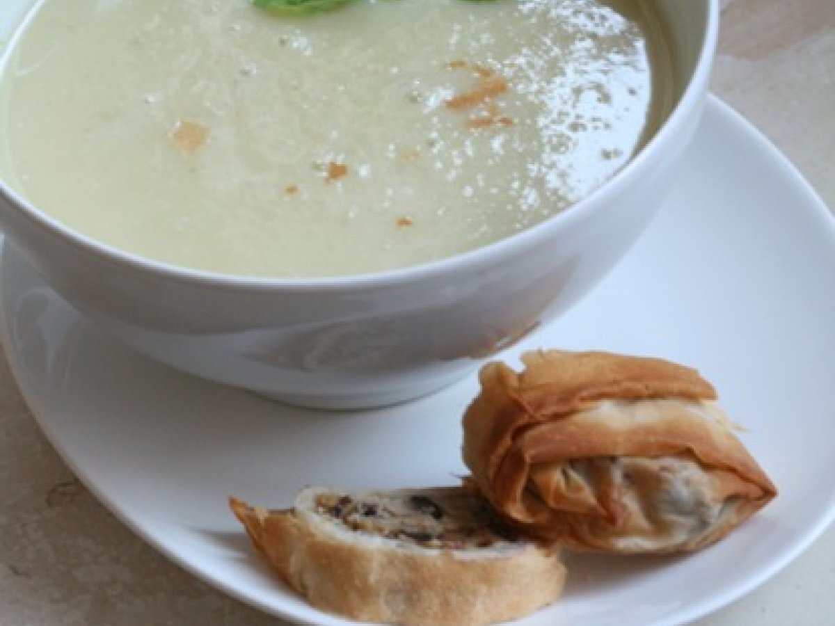Topinambursuppe mit shiitake-bergblumenkäse-strudel
