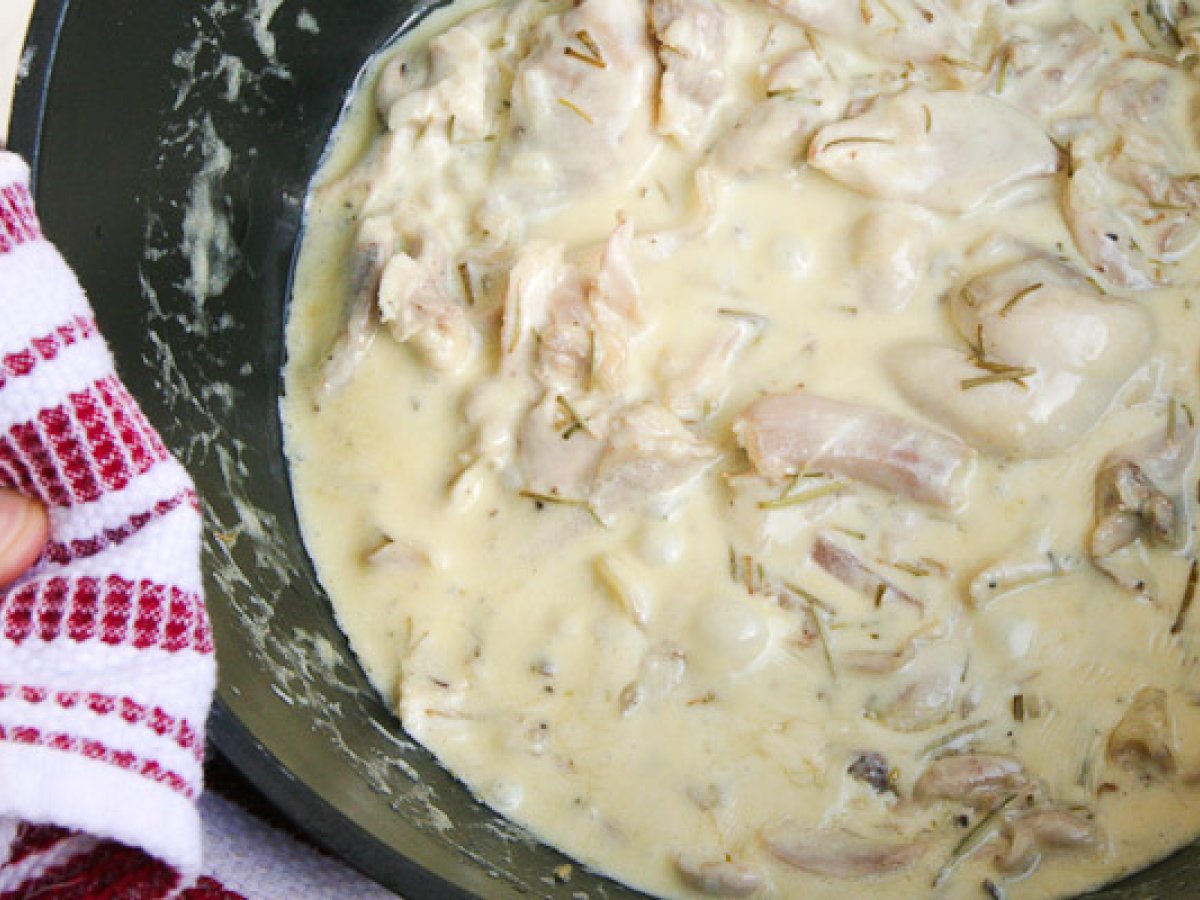 - Sahne hinzufügen und reduzieren Flüssigkeit leicht. Etwa 3 bis 5 Minuten.