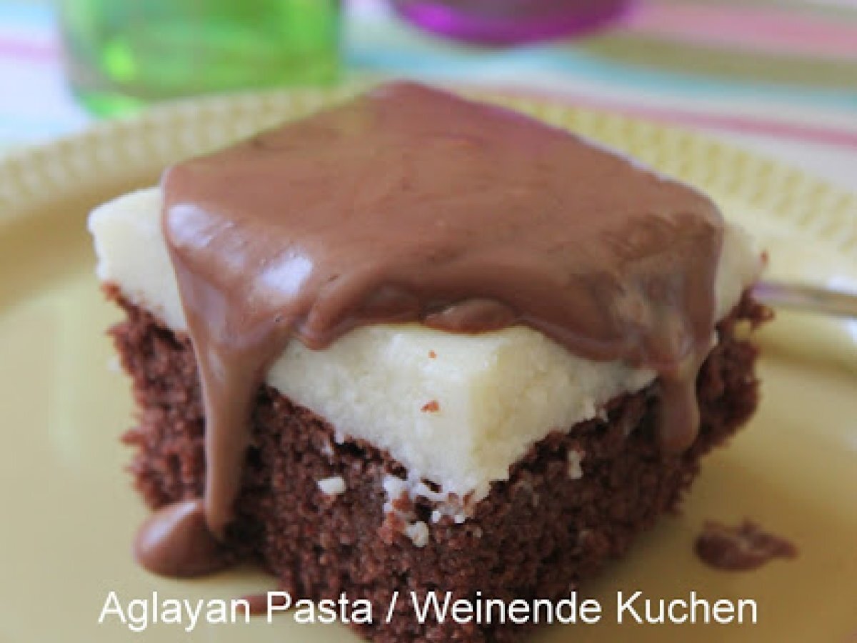 - Kuchen aus dem Ofen rausholen 10 Minuten etwas abkühlen und 300 ml Esslöffel Milch übergießen. Lassen Sie den Kuchen vollständig abkühlen lassen.