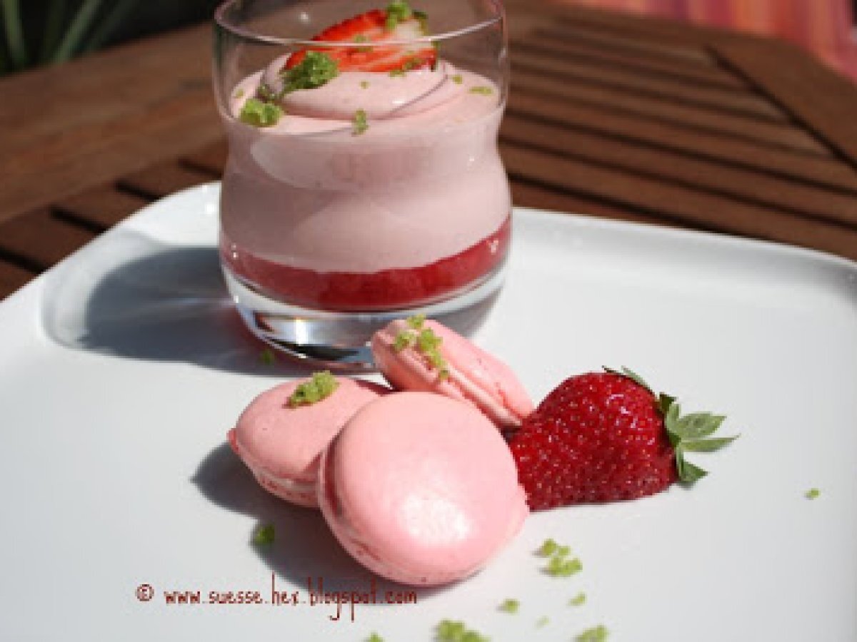 Erdbeer-mousse und erdbeer-macaron´s mit basilikumzucker