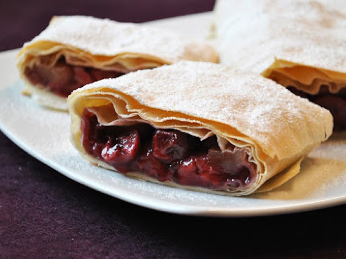 - Die Fruchtmischung auf dem äußeren Drittel der kürzeren Seite verteilen und den Teig von der kürzeren Seite her vorsichtig aufrollen. Die Enden mit der zerlassenen Butter oder Margarine bestreichen und umklappen.