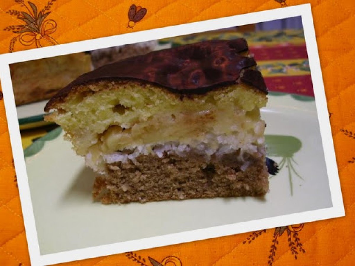 - Betonen Sie die Kakaoteig, verteilen Äpfel geben und mit auf dem Schwamm gerieben.