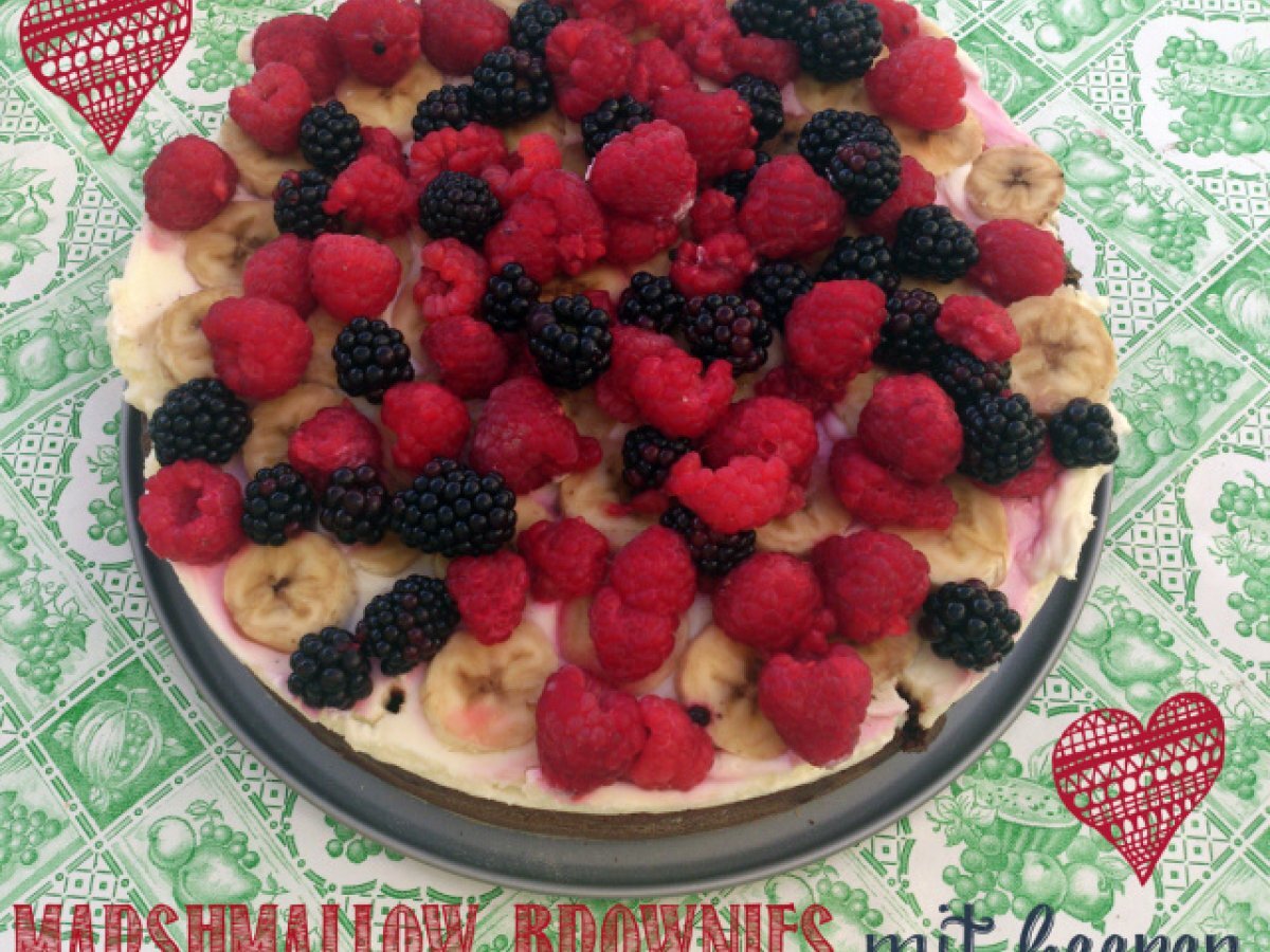 - 05 die bananen in scheiben schneiden & mit zitronensaft beträufeln. die beeren waschen & gut abtropfen lassen. für den belag den frischkäse mit dem gesiebten staubzucker verrühren & auf dem abgekühlten brownie-teig verteilen.