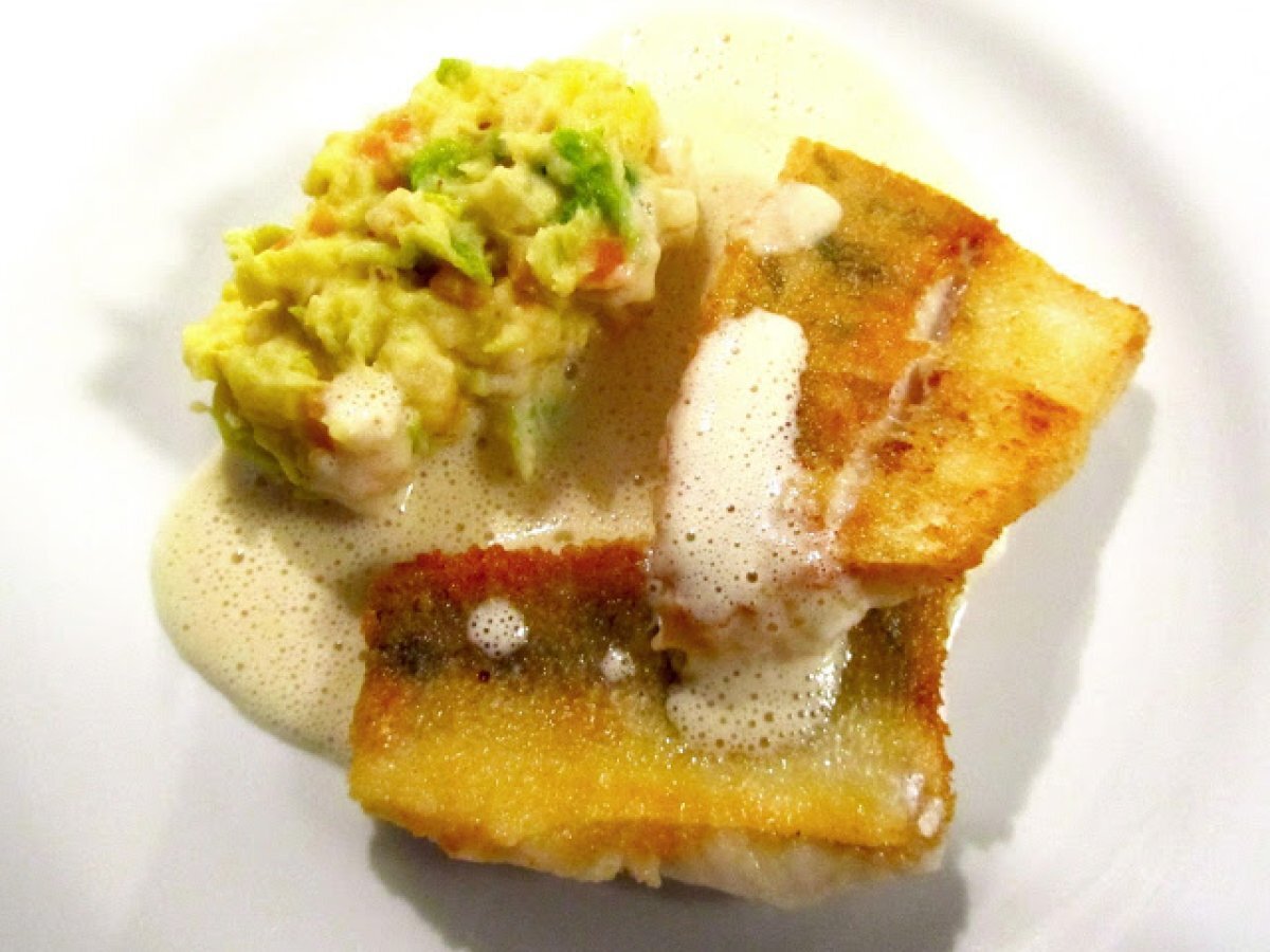 Die Kartoffeln schälen, grob hacken und kochen, bis sie weich sind nicht zu fein stampfen. - Gemüse nicht zu klein Würfel hacken Kohl und Lauch. Braten Sie das Gemüse in 2 EL Butter, Gemüsebrühe und kochen Sie die Creme nicht zu weich.