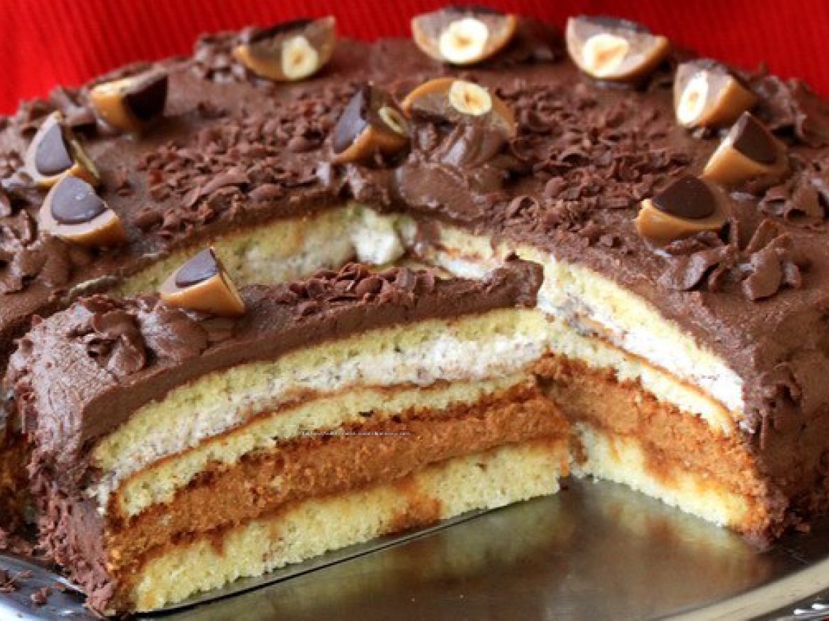 - Reap Kuchen mit Schokoladencreme vollständig bleiben und dekorieren mit Sahne in einen Spritzbeutel.