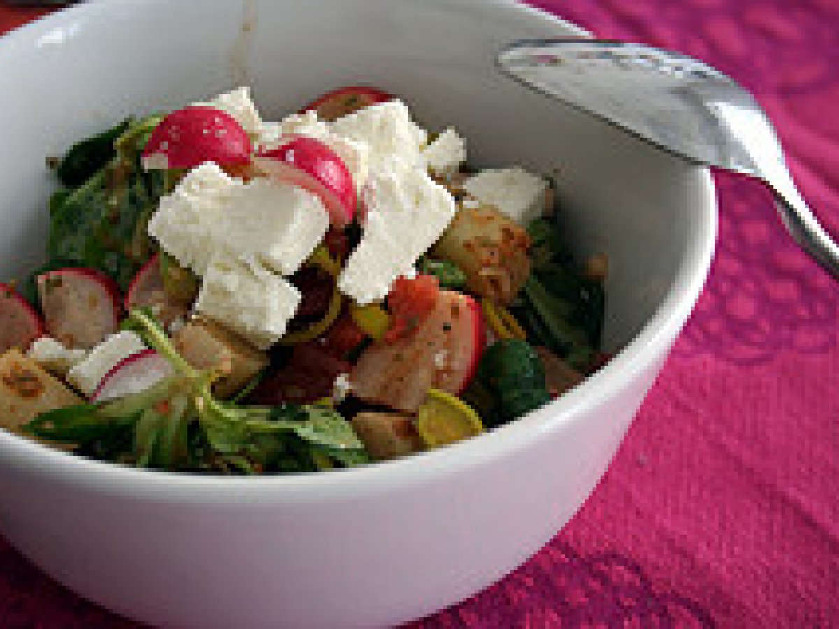 - Für das Dressing aus Olivenöl, Balsamico-Essig, Senf, Tomatenmark mit Salz, Pfeffer, Paprika und italienischen Kräutern abschmecken und geben Salaz.