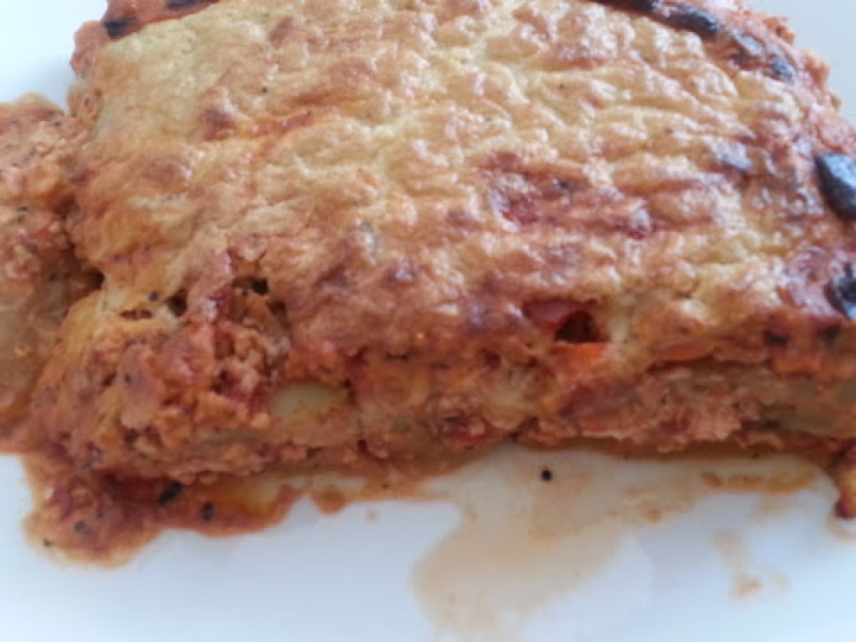 - Kohlrabischeiben in eine Auflaufform schichten, Bolognesesoße darüber geben, dann eine Schicht der Cremesoße, Kohlrabischeiben darüber geben, eine Schicht Bolognese und dann mit der Cremesoße abschließen.