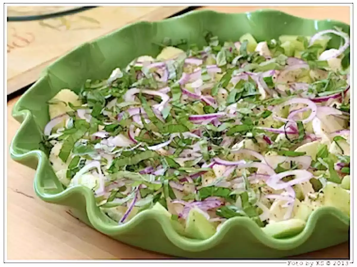 - Zum Schluß mit Alufolie abdecken und mindestens 1/2 Stunde ziehen lassen.