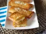Das griechische Rezept heißt Feta Saganak i und ist sehr einfach und preiswert. Alles, was Sie für die Zubereitung dieser Feta-Röllchen brauchen, sind 4 Blätter Filoteig, etwas geschmolzene Butter, Pfeffer, Feta, Sesam und Honig. Das Ergebnis ist eine köstliche und überraschende Vorspeise, bei der sich der Fetakäse in dem knusprigen Teig mit der Süße des Honigs und dem Geschmack der Sesamsamen wunderbar vermischt. Die schnelle Zubereitung und die geringen Kosten von weniger als 2 Euro pro Person machen dieses Rezept ideal für einen besonderen Anlass, aber auch für ein einfaches, aber leckeres Mittag- oder Abendessen. Der Saganaki-Feta überzeugt durch sein perfektes Gleichgewicht der Geschmacksrichtungen!