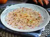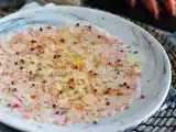 Eine frische und leichte Vorspeise, ideal für den Beginn eines Silvesterdinners, ein magischer Moment, in dem der Tisch zum Mittelpunkt des Abends wird und jedes Gericht dazu beiträgt, eine Atmosphäre der Feierlichkeit und Geselligkeit zu schaffen. Dieses einfache, aber eindrucksvolle Gericht ist perfekt, um die Gäste zu überraschen und das Abendessen mit Raffinesse zu eröffnen, um die Köstlichkeiten vorwegzunehmen, die an einem Abend mit Trinksprüchen und guten Wünschen für das neue Jahr folgen werden .