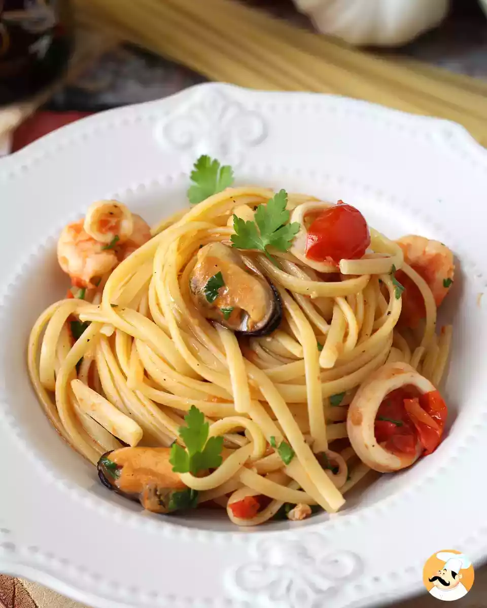 Mal ehrlich: Wer hat nicht immer eine tiefgekühlte Meeresfrüchte-Mischung im Gefrierschrank parat? Ein echter Trumpf für Last-Minute-Dinner, mit dem man im Handumdrehen einen ersten Gang mit Meeresfrüchten zubereiten kann. Wir haben uns für Linguine entschieden, aber Sie können sich auch für Spaghetti oder frische lange Nudeln entscheiden, je nach Ihrem Geschmack. Nudeln mit tiefgefrorenen Meeresfrüchten sindeine praktische und köstliche Idee, um ein spontanes Abendessen in einen Moment des Genusses zu verwandeln.