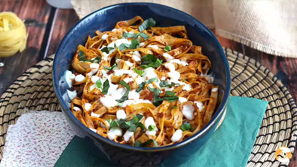 Eine der klassischsten und schmackhaftesten Arten, Nudelreste zu verwerten, ist die Zubereitung einer köstlichen Pasta-Frittata, ein Gericht, das Einfachheit und Geschmack auf unwiderstehliche Weise vereint. Dieses Omelett ist perfekt für alle, die gerne praktisch kochen, aber keine Kompromisse beim Geschmack eingehen wollen. Es eignet sich nicht nur als Eintopfgericht, sondern auch als Snack für ein Lunchpaket. Wir haben es in der Heißluftfritteuse zubereitet, aber wenn Sie möchten, können Sie auch den Backofen benutzen: Es dauert nur wenige Minuten bei hoher Temperatur, bis das Omelett goldbraun und unwiderstehlich ist.