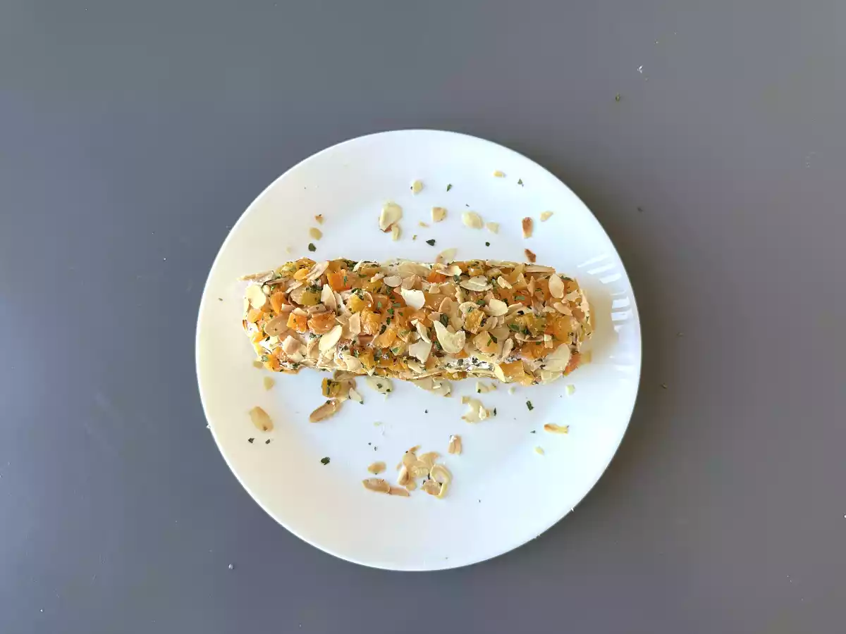 Wenn Sie nach einer originellen Idee für einen Aperitif suchen, ist diese Frischkäseschnitte mit Aprikosen, getrocknetem Schinken und Mandeln genau das Richtige für Sie. Die subtile Mischung aus cremigem Frischkäse, leicht süßen getrockneten Aprikosen, knackigen Mandeln und leicht salzigem luftgetrocknetem Schinken schafft eine perfekte Harmonie der Aromen, die Ihre Gäste sicherlich überraschen wird.