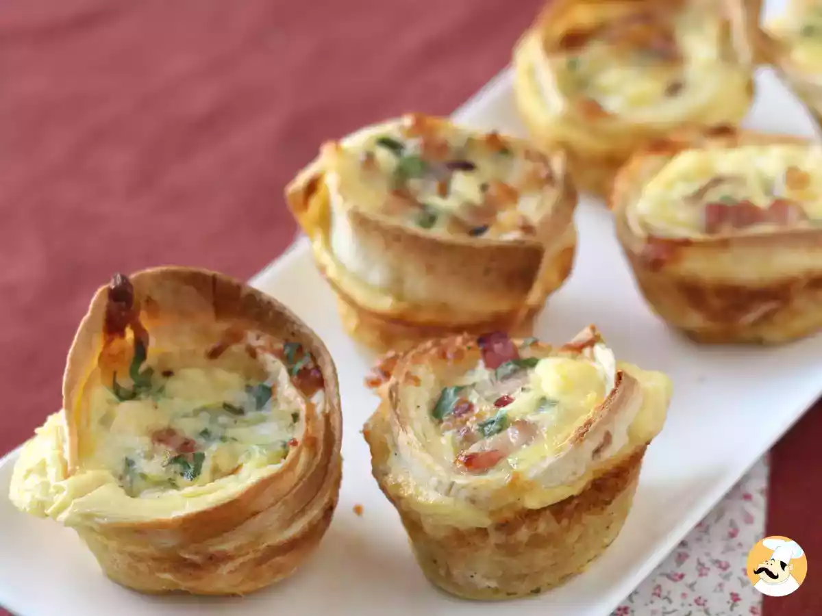 Wenn wir vorher Schalen gemacht haben, ist jetzt dieses kleine Körbchen an der Reihe, das irgendwo zwischen einem knusprig-pikanten Muffin und einer Quiche liegt. Wenn Sie eine klassische Muffinform haben, notieren Sie sich dieses Rezept, um Ihre Gäste beim nächsten Aperitif zu überraschen. Seien Sie gewarnt: Machen Sie reichlich davon, denn sie sind so lecker, dass Sie gar nicht aufhören können, sie zu essen.