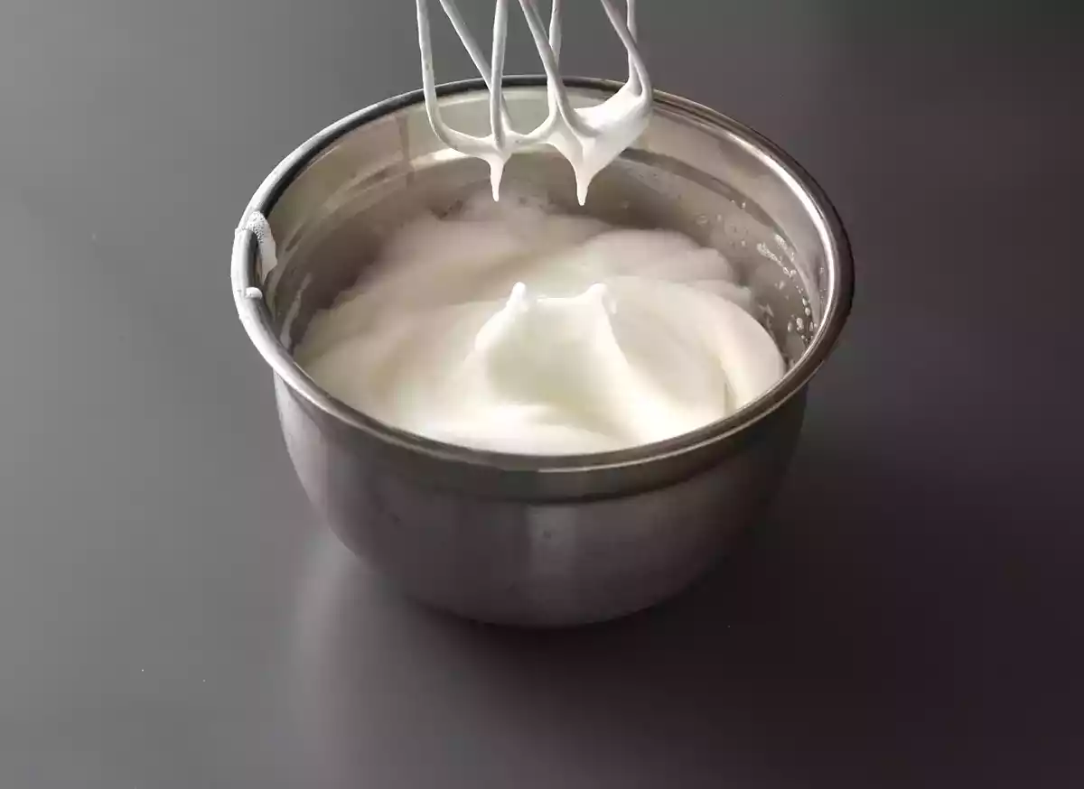 Das Eiweiß zu Schnee schlagen: Das Eiweiß schaumig schlagen, eine Prise Salz hinzufügen und erneut schlagen, bis es steif ist.