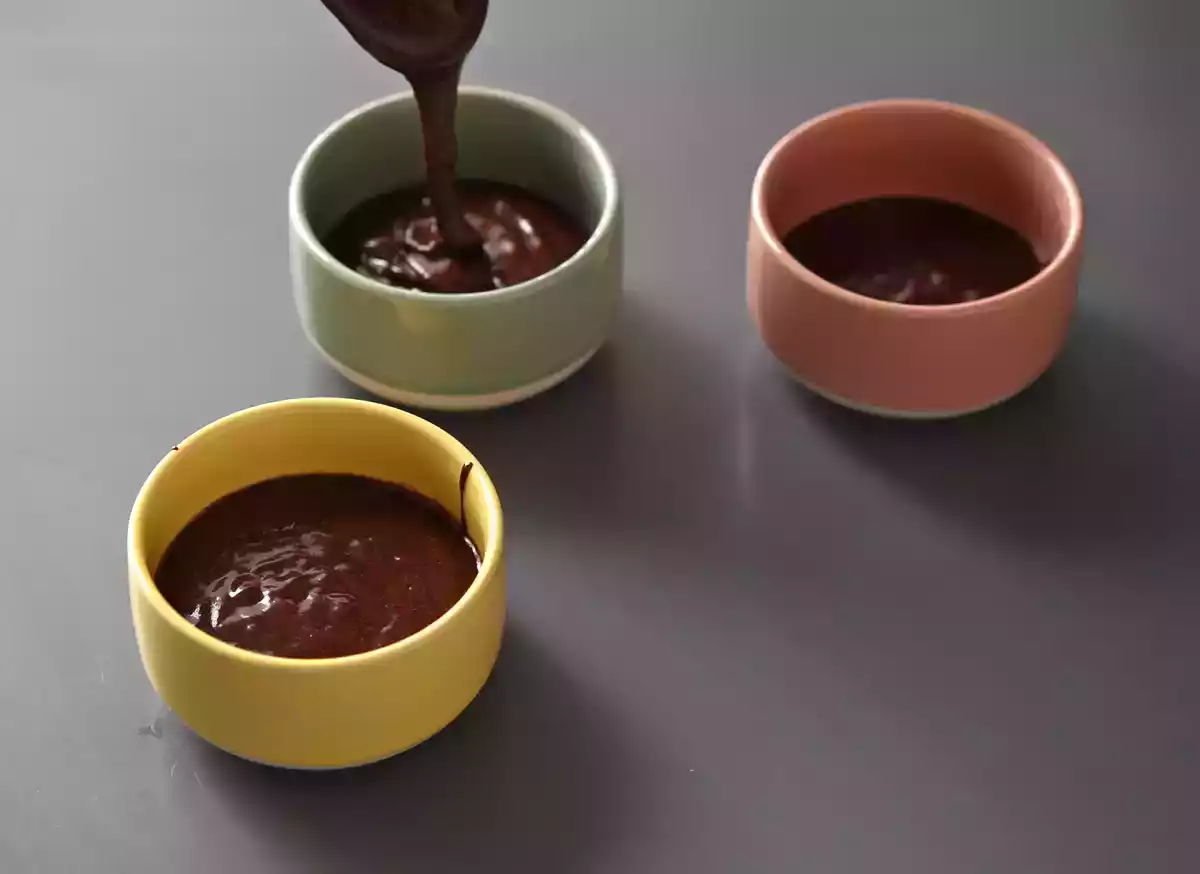 Die Schokoladenmousse in Förmchen füllen. Mindestens 3 Stunden kühl stellen.