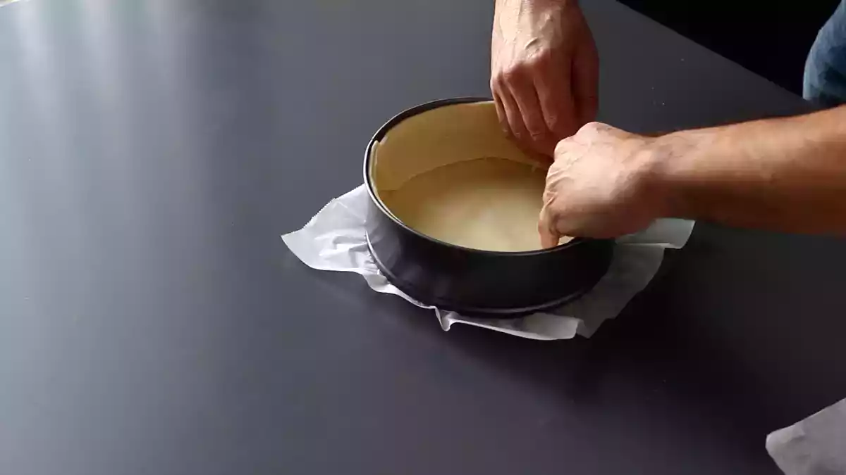 Die Form vorbereiten: Den Boden einer Springform mit Backpapier auslegen. Die Ränder gut mit Butter oder etwas Ölspray einfetten, damit der Kuchen nicht kleben bleibt.