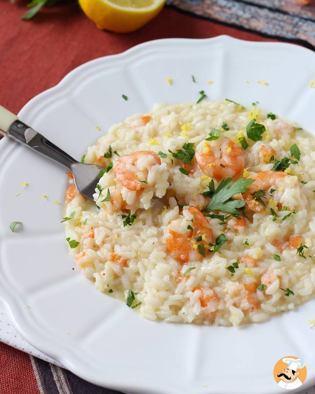 Wenn Sie den Geschmack von Meeresfrüchten lieben, ist das Garnelen-Zitronen-Risotto eines der Fischgerichte für das Osteressen, das Sie nicht verpassen sollten. Dieses zarte, aber charaktervolle Gericht verbindet die Süße der Garnelen mit der Zitrusnote der Zitrone zu einem duftenden und überraschenden Ergebnis. Es ist einfach zuzubereiten, aber beeindruckend und eignet sich perfekt für alle, die etwas anderes als die traditionellen Rezepte für das Osteressen auf den Tisch bringen möchten, ohne dabei auf die festliche Atmosphäre zu verzichten.