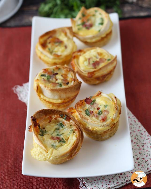 Mini-Quiches in einer Piadina-Schale sind die perfekte Lösung für alle, die ein schmackhaftes, preiswertes und schnell zubereitetes Gericht suchen. Die Zubereitung ist wirklich einfach: In nur wenigen Minuten erhalten Sie dank des Backens im Ofen goldene und schmackhafte Quiches, die sich perfekt für eine Vorspeise, ein Buffet oder ein schnelles Abendessen eignen. Und das Tolle daran ist, dass all dies für weniger als 2 Euro pro Person zubereitet werden kann. Günstig, einfach und sehr schmackhaft, ist dieses Rezept ideal für alle, die mit wenig beeindrucken wollen !